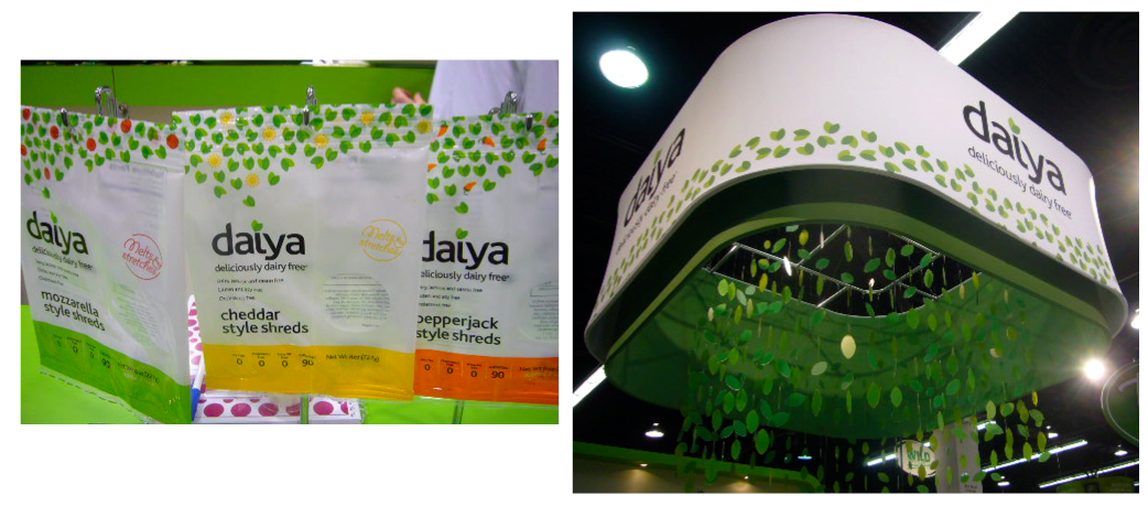 I was wowed by DaiyaFoods sense of BRAND THEATRE and displays created for their Deliciously Dairy Free products. Their design look feels GARDEN FRESH- setting an expectation for an all together new eating experience. The melty goodness of their grilled sandwich “stretched my imagination”, offering some real HEALTHY INDULGENCE. Daiya is a company from Van Couver but you can find their products at retail and used in restaraunts here: Daiya Foods Where to Buy.