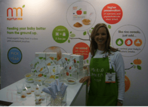 Nurtur me has a sweet line of products to “feed your baby better from the ground up”: Dried organic fruits and veggies in convenient packages. And smart branding too “see the “nm” logo and brand mark) with a GARDEN FRESH look and feel to design.