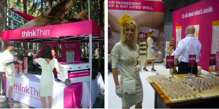 thinkThin Products made a big impression at ExpoWest. Their website recap recreated the experience well: “along with impressive outdoor and indoor booths, thinkThin had 12 models walking around the convention center, posing statuesque in front of the booth and giving people thinkThin protein bars, the #1 weight management bar in the natural channel”. Brava! THINK THIN for your sense of BRAND THEATRE and NATURALLY CHIC style and confidence.